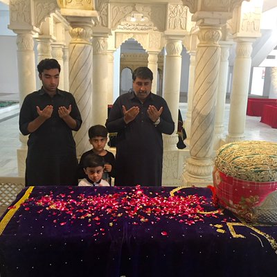 Aijaz Ahmed Laghari Tweeted: 🌹TODAY ON 9TH MUHRAM UL HARAM, ME ALONG WITH MY SONS ,OFFERED FATEH & DUA @ MAZAR OF SMBBS & SZAB SB 🌹