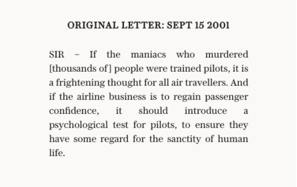 "9/11: The readers writing back to their 2001 selves" Moment